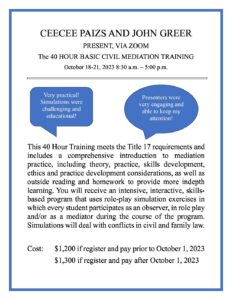 Mediation Training, October 18-21, 2023 | Patuxent Mediation Services